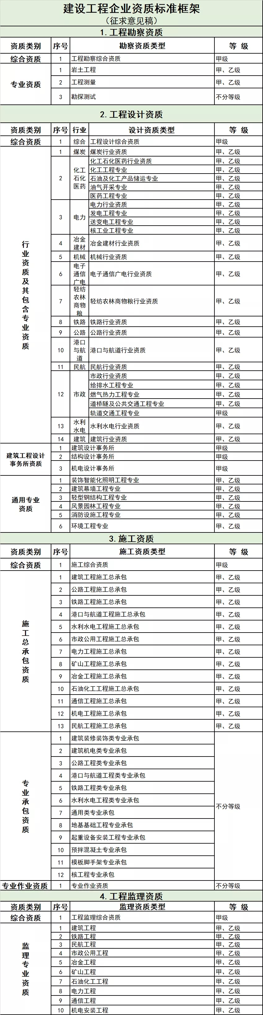 2、建設工程企業(yè)資質(zhì)標準框架(征求意見稿)