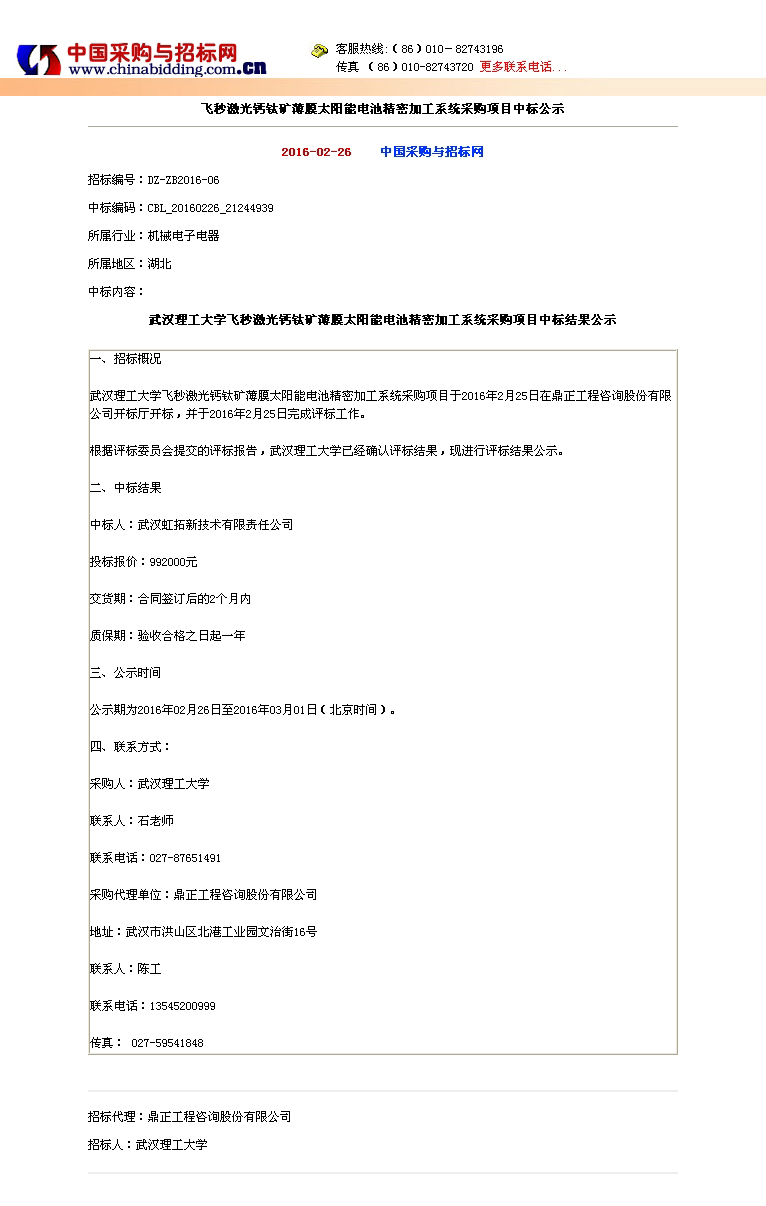 中標(biāo)公告