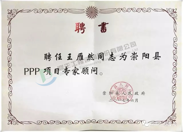 會中,崇陽縣人民政府為王雁然先生頒發(fā)崇陽縣PPP項目專家顧問聘書,負責指導崇陽縣PPP工作。