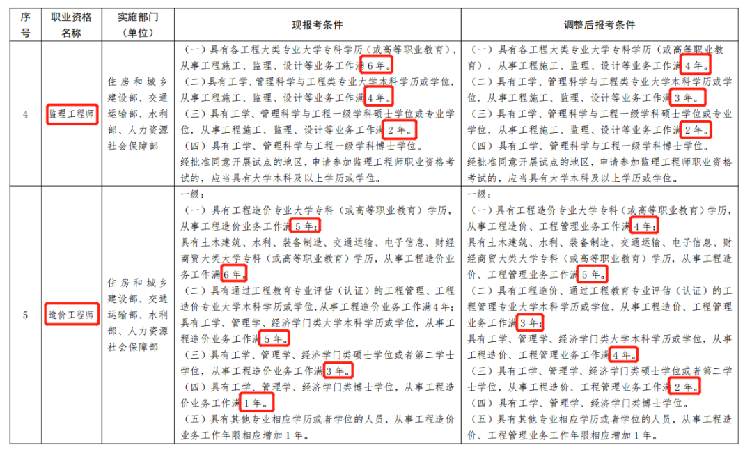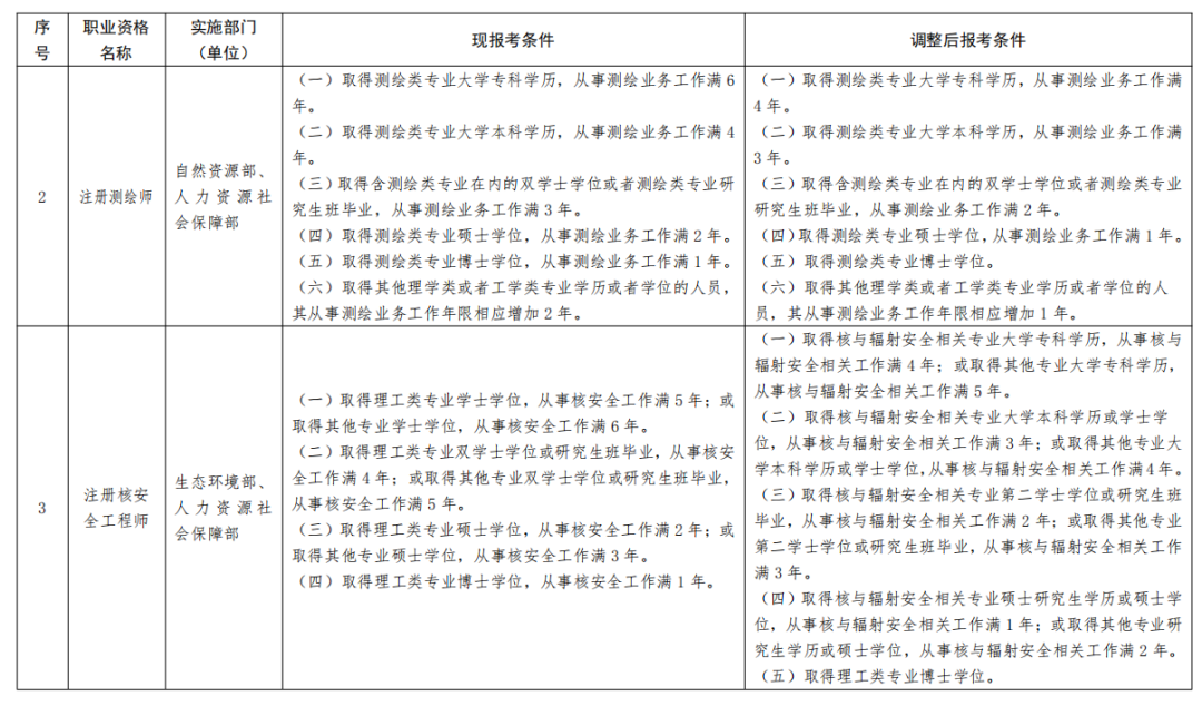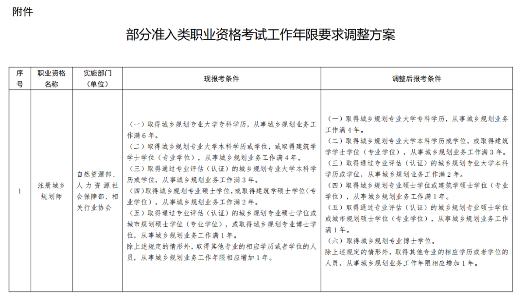 附件:部分準入類職業(yè)資格考試工作年限要求調整方案
