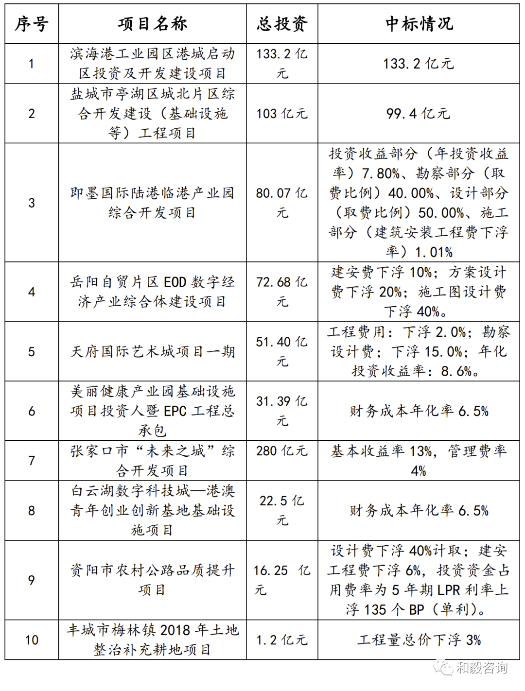 表3 國內(nèi)“投資人+EPC”典型項目中標情況表