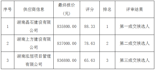 中標(biāo)供應(yīng)商: 湖南晶石建設(shè)有限公司