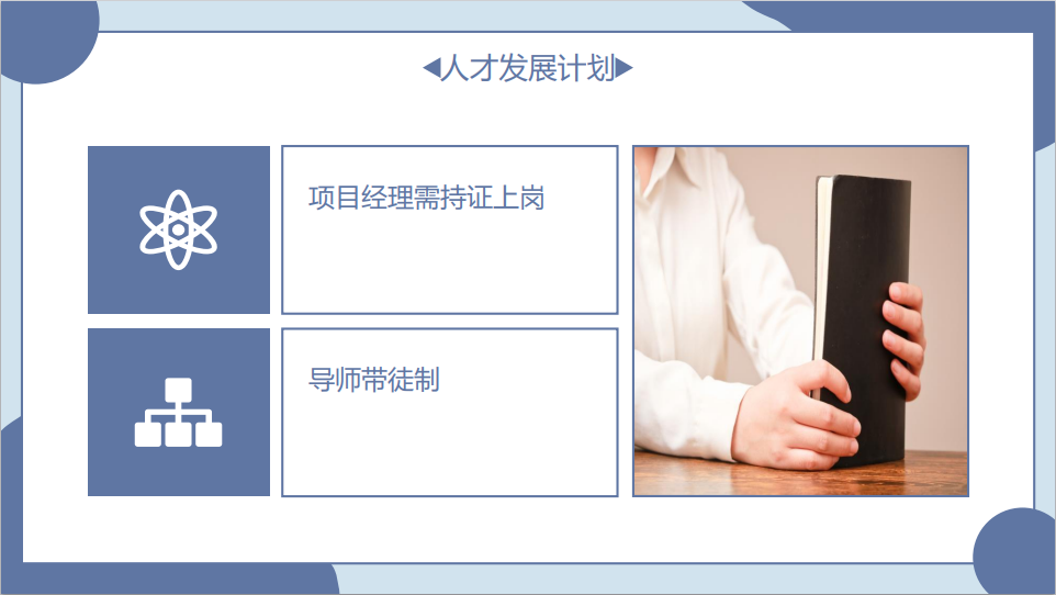 挑戰(zhàn)與機(jī)遇,每一次都為有準(zhǔn)備的人而來!他從“管理制度、人才發(fā)展、項目管控、客戶關(guān)系、部門成本、業(yè)務(wù)發(fā)展”六大維度對事業(yè)部總經(jīng)理一職進(jìn)行了全面闡述。他認(rèn)為,前浪不息,后浪不止。助理工程師的快速成長是企業(yè)發(fā)展的關(guān)鍵,多年來,公司一直在傳承和發(fā)揚“師帶徒”的優(yōu)良傳統(tǒng),但由于學(xué)員水平參差不齊,導(dǎo)致效果不佳,建議量化師帶徒目標(biāo),讓“師帶徒”目標(biāo)更明、實效更強、成果更顯。