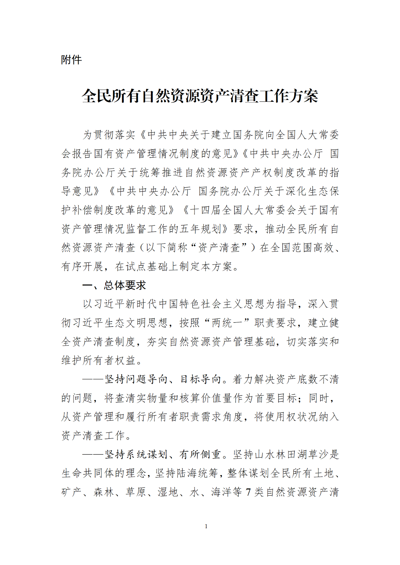 附件:《全民所有自然資源資產(chǎn)清查工作方案》