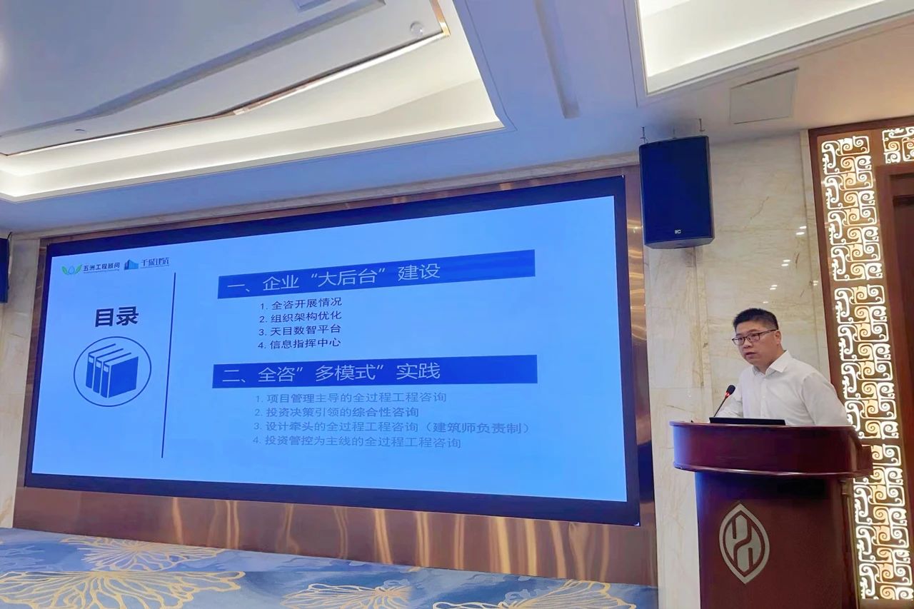 五洲工程顧問集團有限公司執(zhí)行總經(jīng)理柴恩海做了《全過程工程咨詢探索實踐》的主題報告,基于行業(yè)全咨標桿企業(yè)轉型發(fā)展的實際,詳細介紹了公司全咨“大后臺”建設和全咨模式的實踐兩個方面的做法和經(jīng)驗,以及通過數(shù)字化平臺建設,賦能全咨業(yè)務發(fā)展,并對當前全咨發(fā)展提出了相關建議。