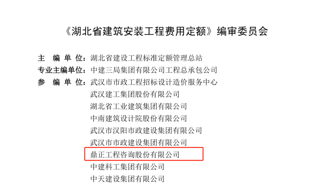鼎正高度重視標準化工作,多次參與國家、地方及行業(yè)標準編制。此次參與《湖北省建筑安裝工程費用定額》《湖北省建筑安裝工程費用定額》的定額編制,既是鼎正多年堅持多年各咨詢板塊專業(yè)化沉淀和發(fā)展的集中體現(xiàn),更是鼎正履行推動行業(yè)進步、規(guī)范建設市場行為的專業(yè)職責所在。下一步,鼎正將繼續(xù)發(fā)揮專業(yè)優(yōu)勢,集結(jié)公司更多骨干專家力量,為提升行業(yè)整體標準化水平、促進行業(yè)的高質(zhì)量發(fā)展貢獻專業(yè)力量。