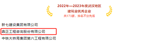 11月21日,武漢建筑業(yè)協(xié)會正式公布“2023年度武漢市最具成長性民營建筑企業(yè)”、“2022-2023年度武漢地區(qū)建筑業(yè)優(yōu)秀企業(yè)、優(yōu)秀企業(yè)家、優(yōu)秀總工程師、優(yōu)秀項目經(jīng)理”兩項評選結(jié)果,鼎正連續(xù)上榜,斬獲多項行業(yè)榮譽(yù)!