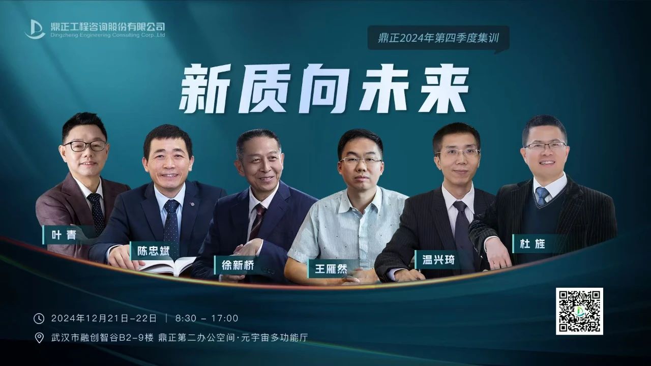 為全面洞悉國內(nèi)外宏觀經(jīng)濟(jì)形勢及建筑行業(yè)的前瞻趨勢,深刻剖析工程咨詢行業(yè)新機遇與挑戰(zhàn),助推業(yè)務(wù)多元化轉(zhuǎn)型與企業(yè)高質(zhì)量發(fā)展,鼎正于12月21日至22日舉辦了第四季度“新質(zhì)向未來”中高層管理研修班。