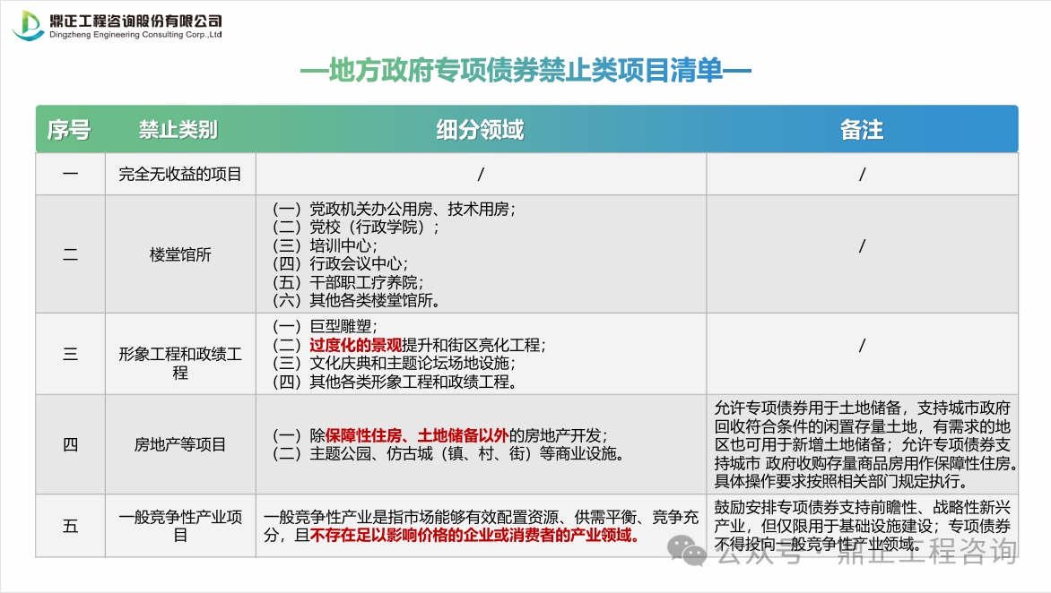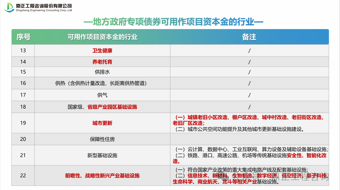 (2)資金投向:精準(zhǔn)匹配專(zhuān)項(xiàng)債券可用作項(xiàng)目資本金的行業(yè),或項(xiàng)目未納入“負(fù)面清單”。