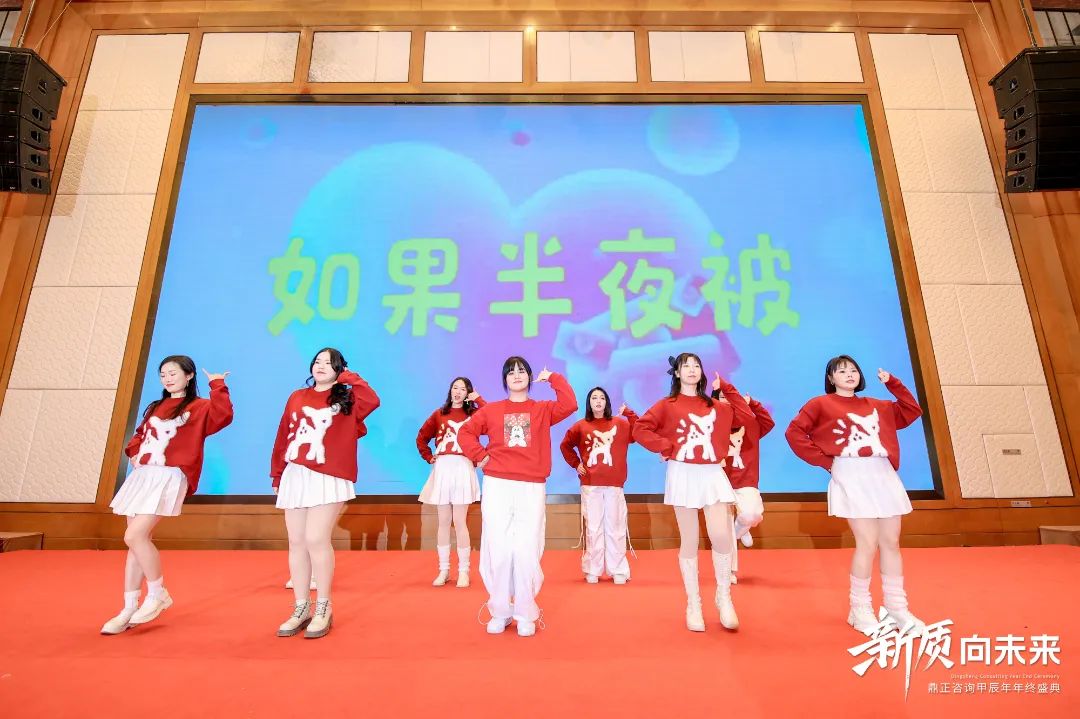 另一邊,由信息部、投標(biāo)部、城市公司發(fā)展部、市場部、財(cái)務(wù)部及造價(jià)咨詢事業(yè)部臨時(shí)組建的女團(tuán),帶來了洋溢著青春活力的舞蹈串燒《愛你》+《桃花朵朵開》,展現(xiàn)了別樣的風(fēng)采。