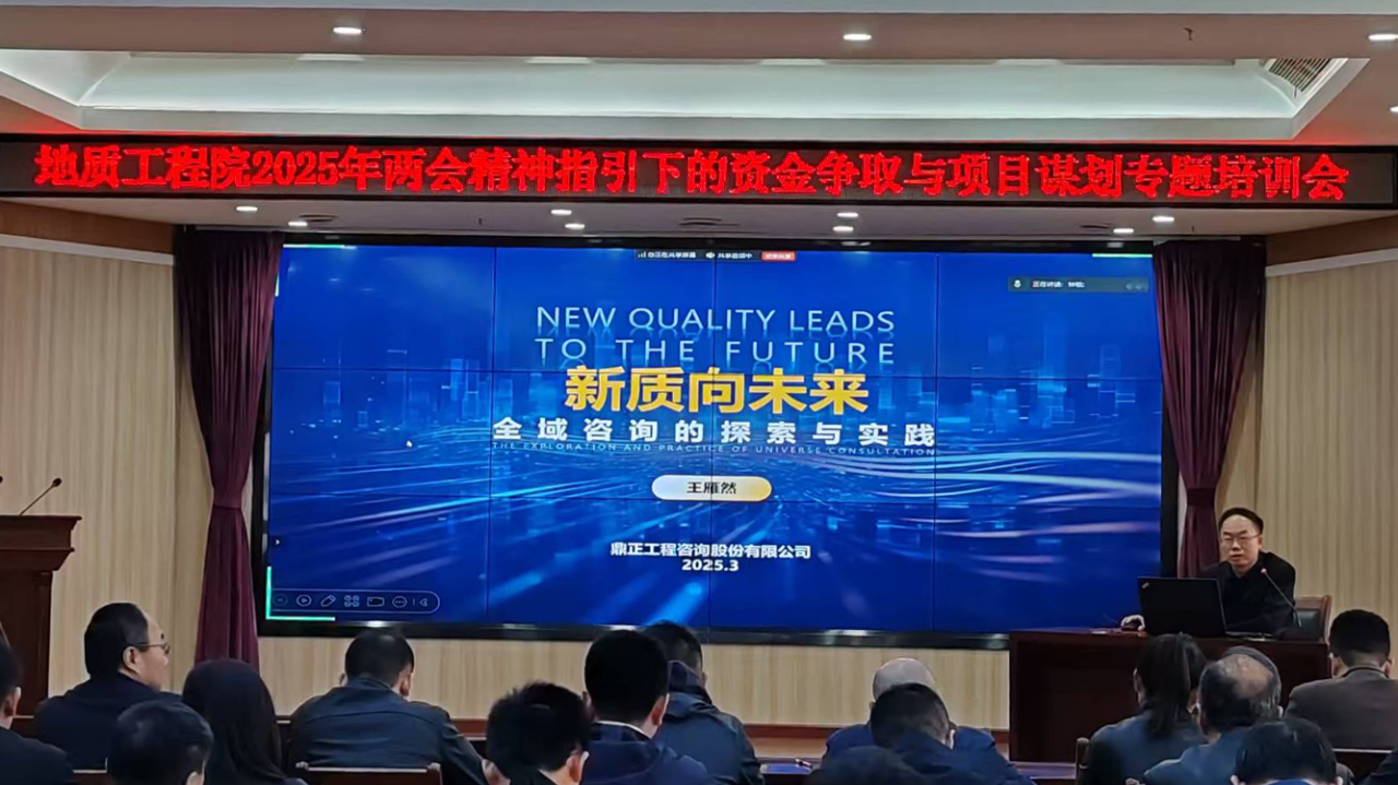 4月2日上午,湖北省城市地質工程院組織召開“2025年兩會精神指引下的資金爭取與項目謀劃專題培訓會議”,鼎正董事長王雁然、副總經(jīng)理彭亮受邀擔任主講嘉賓,并作專題培訓交流。