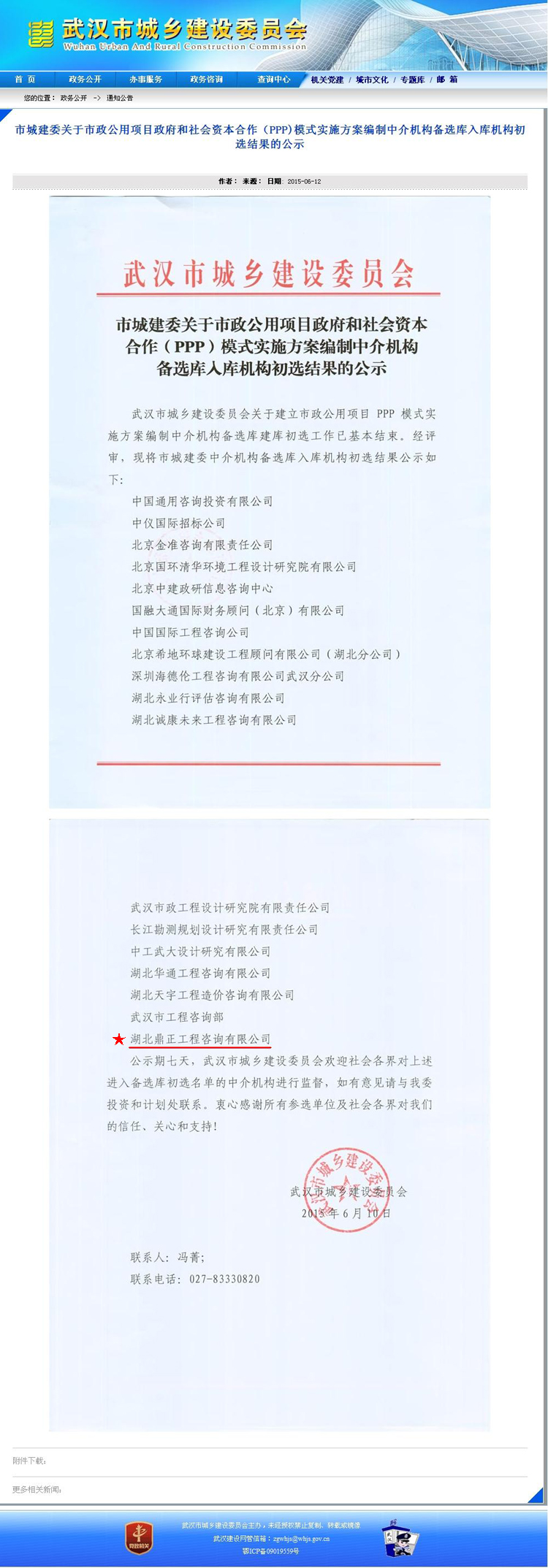 【經(jīng)營成果】我司入圍市城建委關(guān)于市政公用項目政府和社會資本合作(PPP)模式實施方案編制中介機構(gòu)備選庫