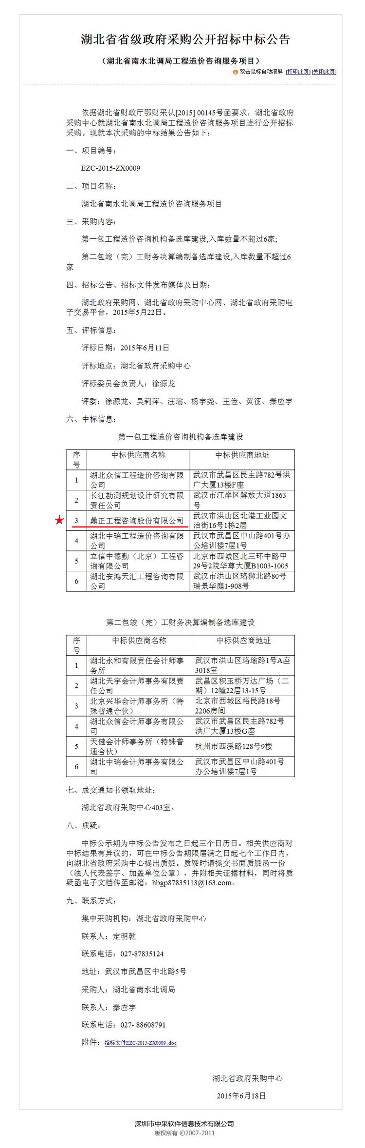 【經(jīng)營成果】我司入選湖北省南水北調(diào)局工程造價咨詢機構(gòu)備選庫