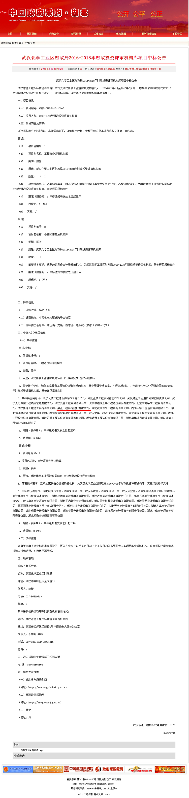 【經(jīng)營成果】我司入圍武漢化學(xué)工業(yè)區(qū)財政局2016-2018年財政投資評審機(jī)構(gòu)庫