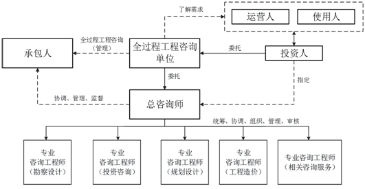 本項(xiàng)目全過(guò)程工程咨詢(xún)服務(wù)組織模式如下圖:
