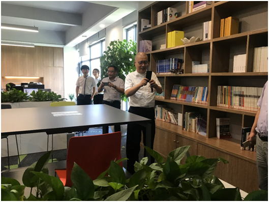 尹教授及各位來(lái)賓在我司董事長(zhǎng)王雁然先生的陪同下,參觀了我們的辦公樓。當(dāng)尹教授來(lái)到綠意盎然、滿室書(shū)香的二樓閱覽室時(shí),還拿出手機(jī)連連拍照,每一層看完后尹教授贊不絕口,和陪同人員說(shuō):“鼎正的環(huán)境無(wú)論是硬件設(shè)備設(shè)施,還是裝修風(fēng)格都領(lǐng)先于同行業(yè) ”。