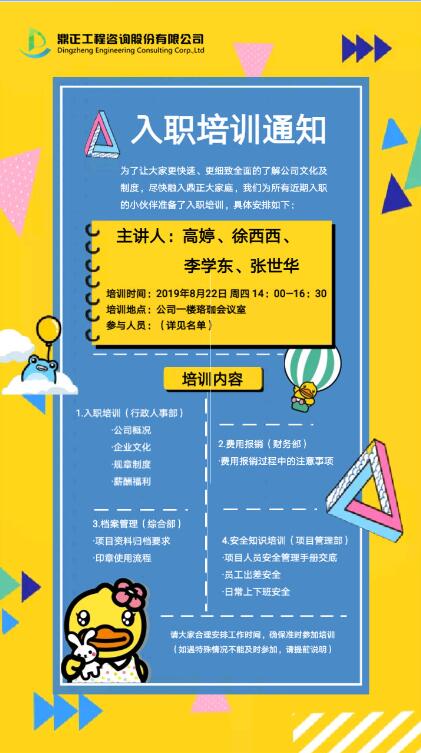 8月22日下午,鼎正咨詢8月新員工入職培訓(xùn)于鼎正珞珈多功能廳舉行,副總經(jīng)理毛迎霞出席,13名新員工參與本次培訓(xùn)。本次培訓(xùn)旨在幫助新員工們盡快了解公司企業(yè)文化與發(fā)展歷程、熟悉公司相關(guān)規(guī)章制度,增強(qiáng)員工的歸屬感,提升員工的工作技能,快速融入公司。