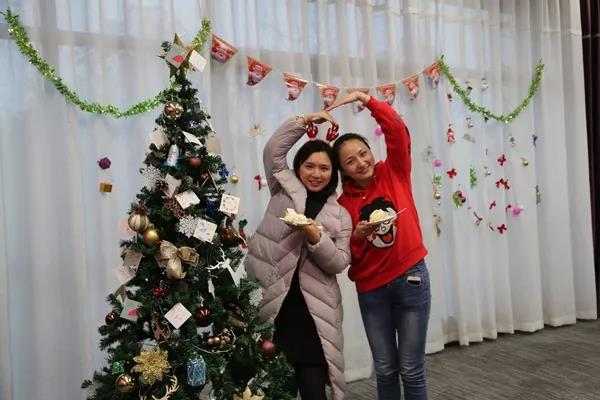 ▲抽到禮物的同事們和圣誕樹(shù)開(kāi)心合影