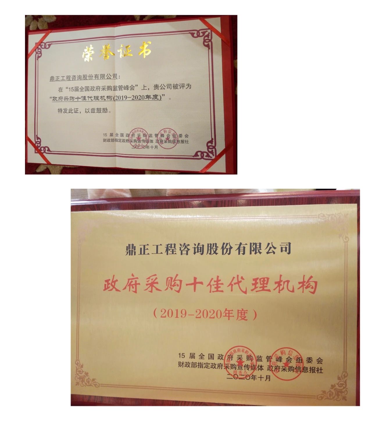 2020年10月,在由《政府采購信息》報聯(lián)合政府采購信息網(wǎng)舉辦主辦的“全國政府采購百強代理機構(gòu)(2019-2020年度)暨全國政府采購十佳代理機構(gòu)(2019-2020年度)”評選活動中,我公司榮獲“全國政府采購十佳代理機構(gòu)(2019-2020年度)”稱號,是湖北省唯一榮獲此殊榮的公司。